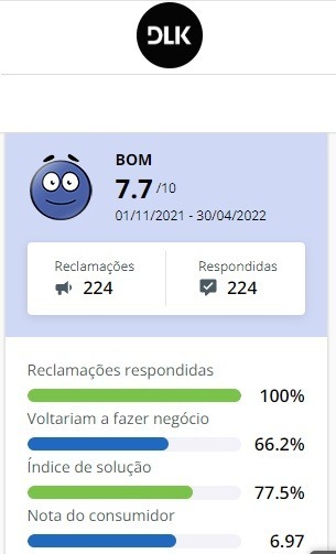 Após muito pesquisar, eu percebi que a DLK tem uma boa reputação no Reclame Aqui.