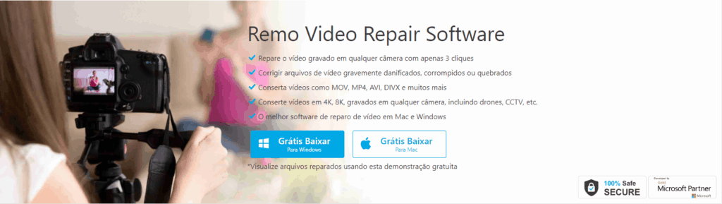 Com o Remo Video Repair, você vai poder corrigir arquivos de vídeo que estejam seriamente corrompidos, podendo consertar vídeos em quase qualquer formato (incluindo MOV, MP4, AVI, DIVX, e muito mais).